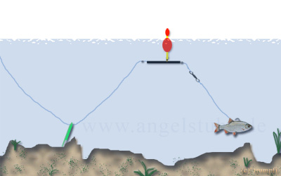 Diese Montage eignet sich bei verschlammden Boden. Sie ist ähnlich wie die Balonmontage jedoch wird hier ein Tirolerhölzel und eine Pose benötigt. |